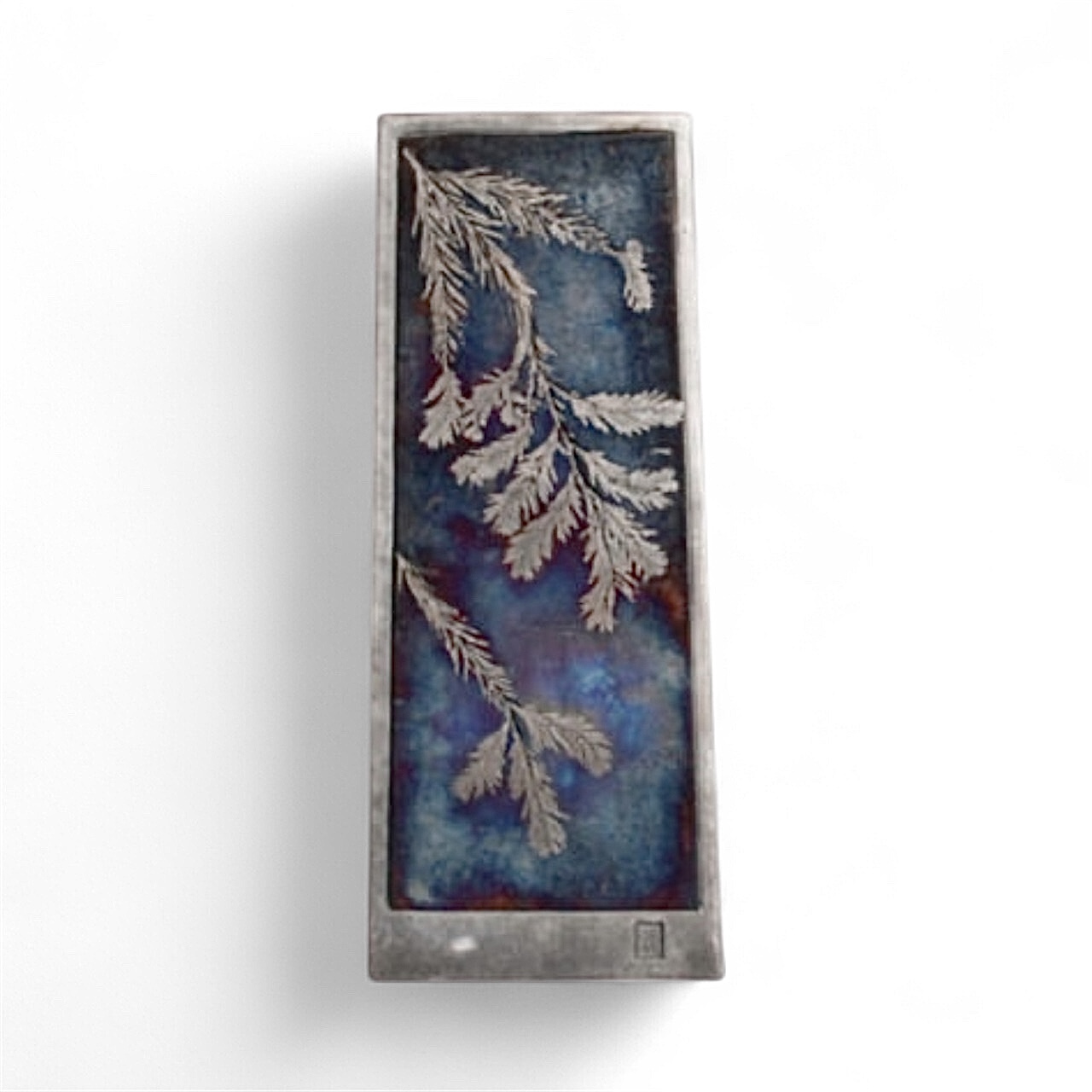 Using the ancient Japanese method of Raku, each wall hanging is removed from the kiln when it reaches a temperature of 1400 degrees Fahrenheit and immediately plunged into combustible sawdust. The smoke and flames interact with the glaze creating shimmering metallic colors.